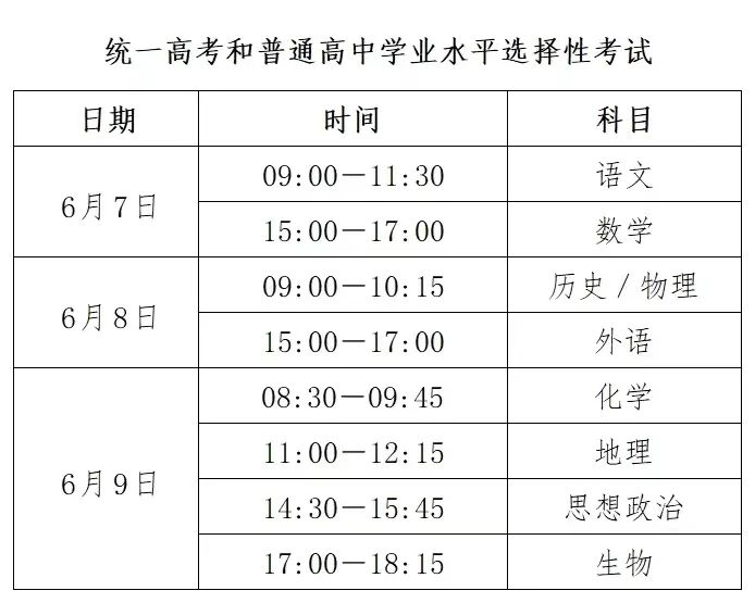 最新!2024年河北高考时间安排→