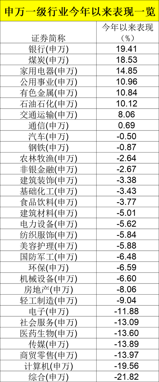 前5月表现突出的是红利类、资源类板块。从申万一级行业来看,银行、煤炭、家用电器、公用事业、有色金属等板块涨幅超过10%,而综合、计算机、商贸零售、传媒、医药生物、社会服务、电子等板块跌幅超过10%。