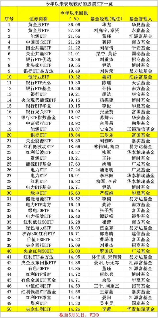 上半年基金业绩出炉!最牛基金年内收益率超32%,黄金、央国企、能源相关ETF年内表现不俗
