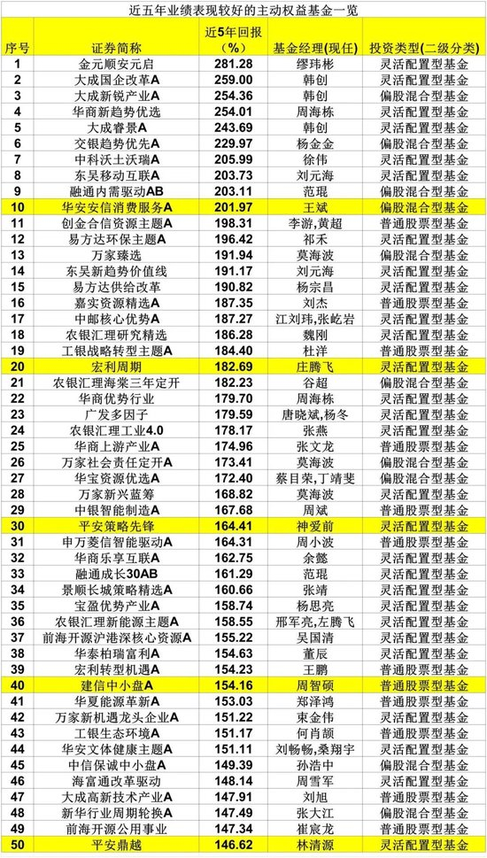 从最近五年投资来看,表现最佳的基金收益率超280%。