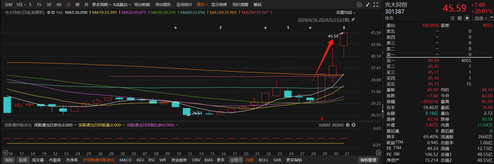 二级市场上,光大同创周五收盘20CM涨停,录得3天2板。