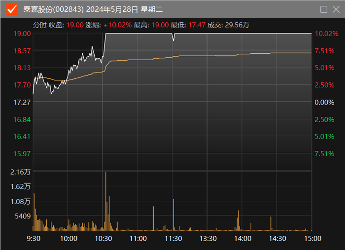 泰嘉股份周四发布机构调研纪要显示,公司已完成新客户AI PC电源产品的试制工作,并已根据客户订单需求有序生产中,该产品盈利能力较好,能带来新的业务增量,助力盈利能力改善。二级市场上,泰嘉股份周二收盘涨停。