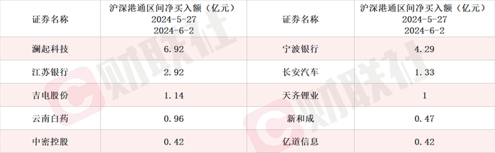 在本周接受调研的上市公司中,北向资金流入最多的三只股票分别为澜起科技、宁波银行和江苏银行,净买入额分别为6.92亿元、4.29亿元和2.92元。