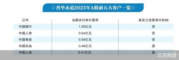经同花顺iFinD统计,2023年,普华永道A股客户共107家,合计审计费用8.79亿元;大华所A股客户共411家,合计审计费用4.91亿元。