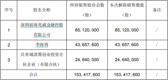 兆威机电本限售股解禁明细