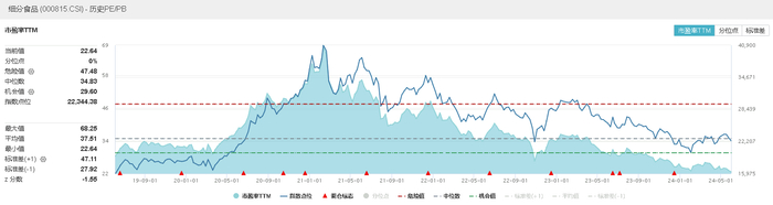 从投资角度来看,当前或为配置食饮板块良机。除行业活动频繁举办,行业基本面持续稳步复苏外,极具吸引力的估值水平也印证着这一观点。Wind数据显示,截至5月31日收盘,场内热门布局工具食品ETF(515710)所跟踪的标的指数细分食品指数市盈率为22.64倍,位于近5年0%分位点的绝对低位,从中长期维度来看,当前或为良好的配置时机。