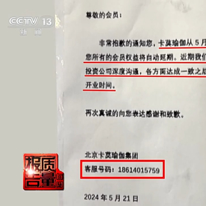 随即,记者走访调查了北京多家卡莫瑜伽馆,这些门店几乎都是大门紧锁,店门口都张贴着一张写有同样内容的通知,公布的联系电话也同样都是无人接听。
