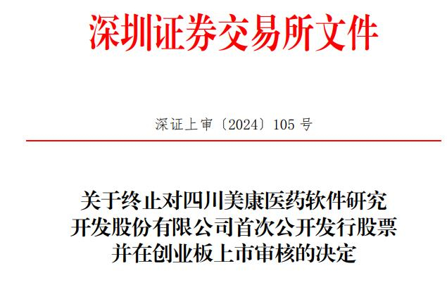 中国经济网北京6月3日讯 深交所网站日前公布关于终止对四川美康医药软件研究开发股份有限公司(简称“美康股份”)首次公开发行股票并在创业板上市审核的决定。