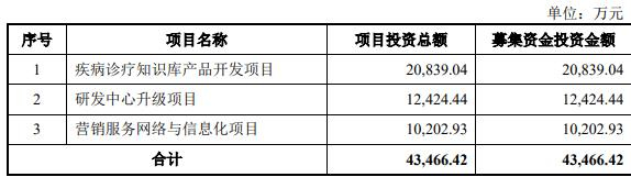 美康股份原拟在深交所创业板公开发行股数不超过1,875.00万股,原拟募集资金43,466.42万元,计划用于疾病诊疗知识库产品开发项目、研发中心升级项目、营销服务网络与信息化项目。