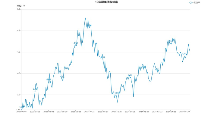 上周二(5月28日)发布的美国5月消费者信心指数意外走高,显示经济悲观预期有所削弱,美国国债收益率在长周末归来后升至高位。截至28日尾盘,10年期美债收益率上涨7.51个基点,报4.54%。