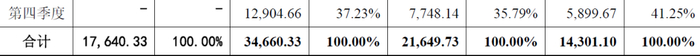 招股书中披露的主营业务收入按季度划分情况,如下表所示: