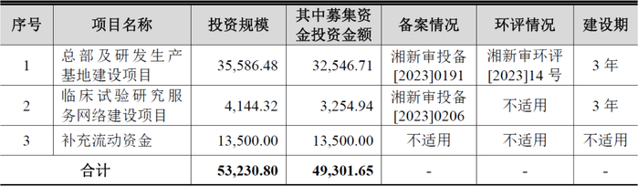 IPO企业为什么要上市,募投项目是上市主要原因,而募投项目合理性是企业上市师出有名中的名,如果“名”不正,则上市动机当存疑。招股书中披露本次募投项目情况,如下表所示: