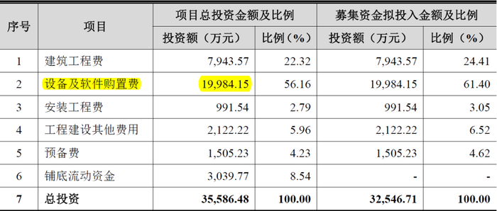 从上表标记颜色栏位可见,发行人该项目中投资最大的为设备及软件购置费,投资额高达19,984.15万元,几乎为2亿元整,且占本次募资总额的比例也高达61.40%,这笔设备及软件购置费的投资是发行人出师有名的名中之“名”,发行人能否名正,未必……