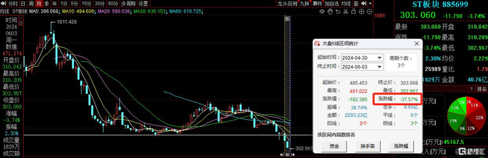 自从新“国九条”、退市新规发布后,4月份以来,ST板块指数出现断崖式快速下跌,期间板块指数累计跌幅超过37%,大幅跑输同期大盘!