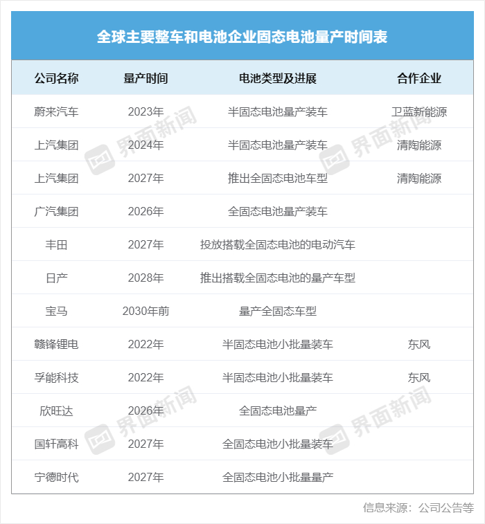 多家动力电池企业也在近期宣布了固态电池的最新进展或计划。