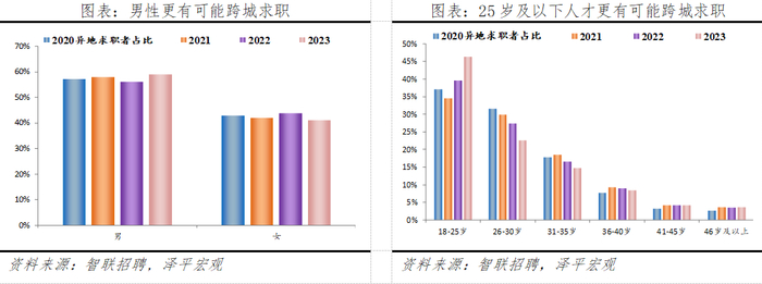 25岁以下、高学历人才、男性更可能跨城求职