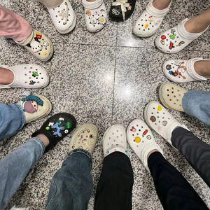 而这只是一双“毛坯鞋”的价格。各式各样的鞋花是不少消费者购买洞洞鞋的另一笔附加开销。