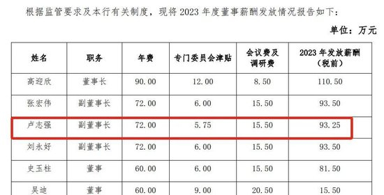 根据披露,卢志强2023年在民生银行的税前薪酬为93.25万元。