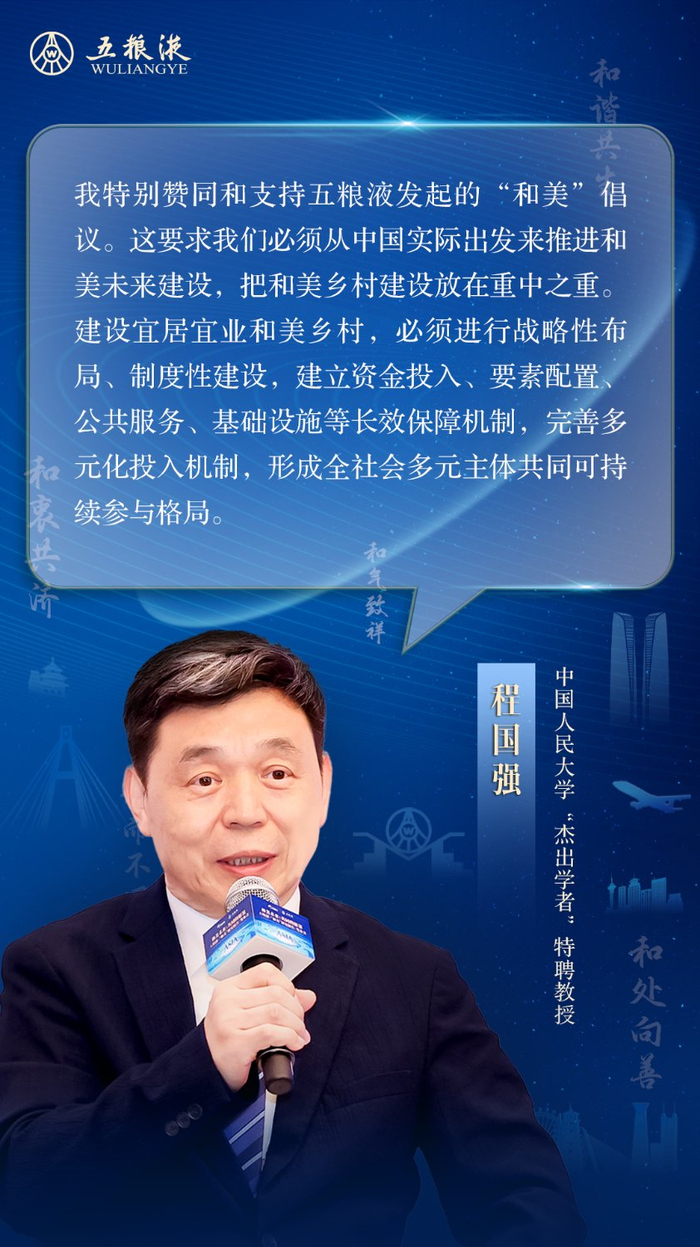 首先,建设和美未来,最不能缺少的就是建设和美乡村。中国是一个农业大国,现在还有近5亿人常住农村。我特别认同也支持五粮液发起的“和美”倡议,这要求我们必须从中国实际出发来推进和美未来建设,把和美乡村建设放在重中之重。
