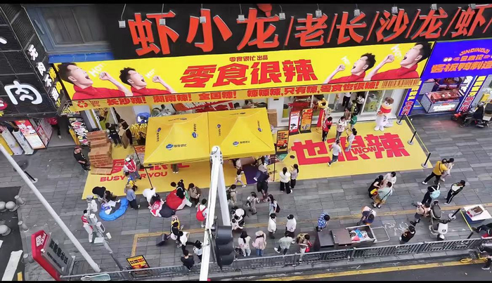 今年上半年,它开出的“超级零食很忙”和“零食很大”,都以超大包装零食为卖点,并在当时成为长沙热门网红打卡地。而“零食很辣”的门店,实际上是“零食很大”的旧址,后者也搬迁到门店面积更大的新位置,距离旧址不过200米距离。