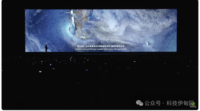 我们现在可以打造地球的数位孪生,如此一来,我们就可以去预测我们的地球未来会有什么样的变化。我们可以避免天灾发生,我们可以更加了解气候变迁对于我们生活环境的影响,可以改变我们生活习惯。因此,地球的数位孪生,可以说是有史以来最大的一项发展计划,每年我们都有长足的进步。等一下我会给大家看到我们这周这么多年下来的一个发展的结果。请各位观赏。想象一个我们能够预测未来的世界,数位孪生反映真实情况的虚拟世界,让我们看见未来数位孪生是一种反映真实世界的虚拟模型,让我们能够从今天的行为来预测对未来世界的影响。
