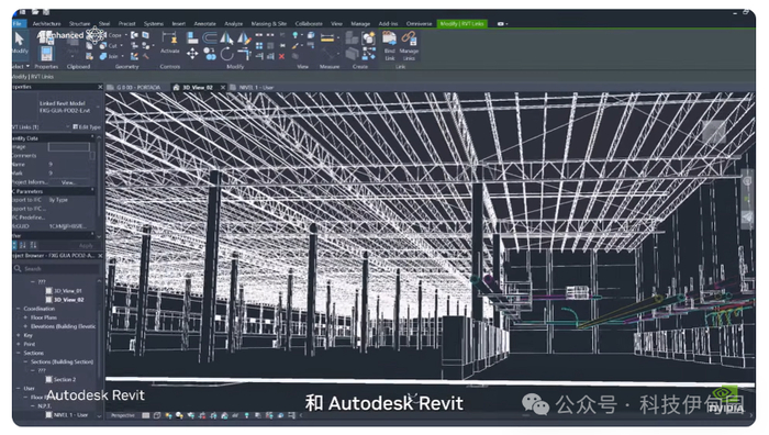 这个影像是鸿海新的工厂。随着世界将传统资料中心现代化为生成式AI工厂,对NVIDIA加速运算的需求正在飞速提升。鸿海科技集团作为全球最大的电子制造商,正准备通过使用NVIDIA Omniverse 和AI建造机器人工厂来满足这一需求。工厂规则者使用Omniverse以整合来自产业领先应用程式的设施和设备数据,例如Siemens Team Center X和Autodesk Revit。
