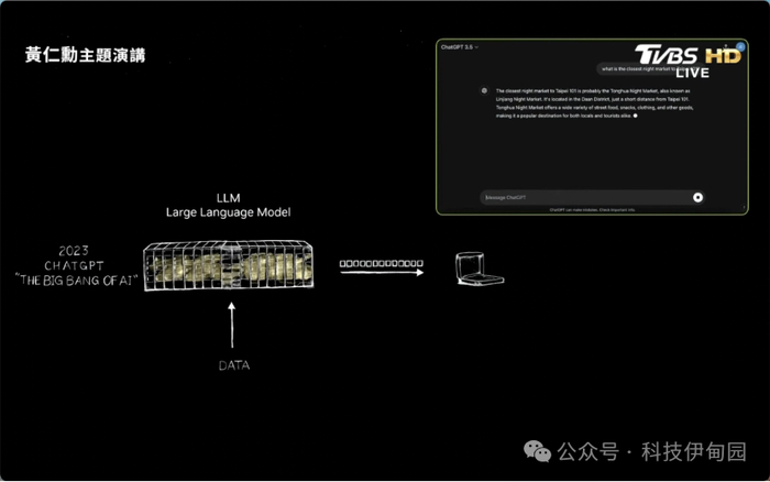 这是我们的第一台DGX超级电脑,所以从这样的一个超级电脑,我们不断的扩充它的规模,我们把它的规模越做越大。到了2017年,我们有了Transformer这个系统,所以我们可以用大量资料来做训练,我们可以整去分析长时间的资料,找到它的一些模式,我们这样子就可以进行自然语言的处理,这也是一个很大的突破。还不止是这样,我们又打造了更大的系统。在2022年11月,我们用几千个几万个我们NVIDIA的GPU,我们来做了很多的训练,所以短短五天的时间,有一百万人在使用Open AI他们所打造的人工智慧系统。为什么能够有这么好的成绩呢?因为使用起来非常的简便,而且效果非常的好。能够把电脑当成人一样,跟他们进行互动,换句话说,这个大电脑它能够知道我们想做什么。