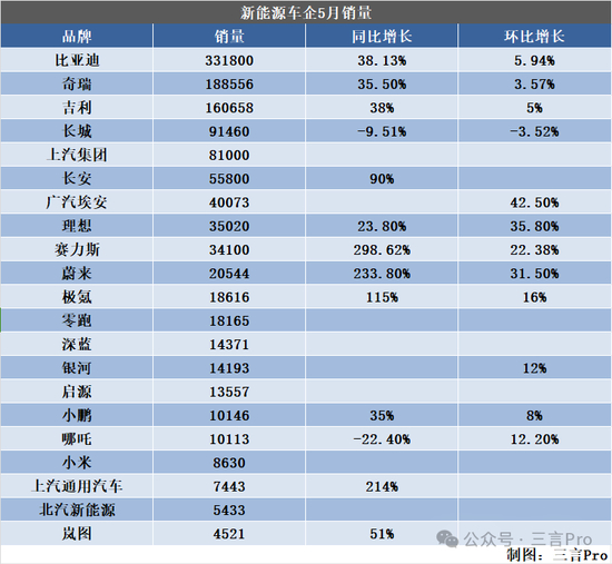 尤其是新能源,5月销量同比增长了279.3%。势头相当猛。