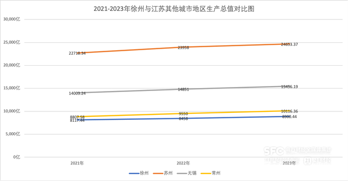 随着同属江苏省的常州市2023年全年GDP成功破万亿,“五省通衢”徐州被外界认为是长三角下一个万亿城市最有力的竞争者之一。