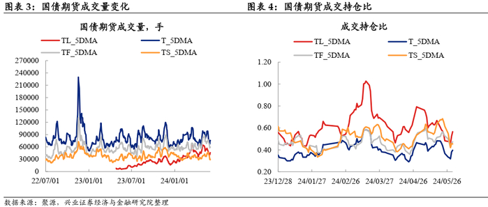 成交和持仓而言,5月20日-5月31日,国债期货各品种成交量和持仓量季节性下行,大概率与合约切换有关。