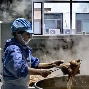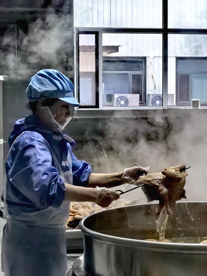 厂区员工正在制作烧鸡
