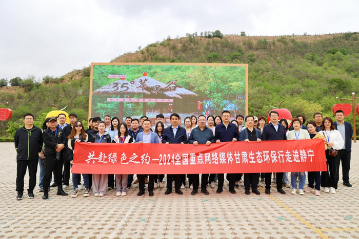 采访团在静宁县35°苹果谷景区合影留念