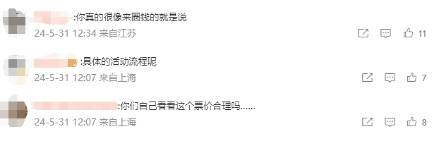 性价比不太高是粉丝们比较普遍的看法,就目前公开信息来看,首映粉丝节中并不会超前点映正片,只播放一些高光片段,演出乐队SPYAIR在2019年也曾在上海开过live house演出,价格为190元到680元,此外首映粉丝节目前具体流程还比较模糊,观众不能确定音乐表演、主创交流时长有多久,1180元的票价却已与专业歌手演唱会门票价格持平了,“林俊杰内场1380元,粉丝见面会都卖1180元了,韭菜也不是这么割的。”