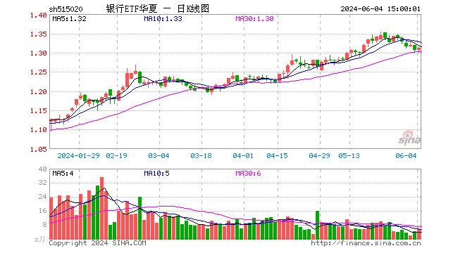 6月4日,华夏中证银行ETF(515020)收盘涨0.38%,成交额701.35万元。