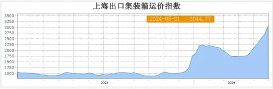 据上海航运交易所的数据显示,5月31日,上海出口集装箱运价指数(SCFI)环比上涨13%,突破3000点,为2022年8月以来的最高水平。