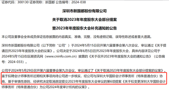 值得注意的是,5月29日,新国都再次发布公告,称取消了原计划变更深圳大华国际为2024年度审计机构的议案,原因是鉴于深圳大华国际近期相关事项尚待公司进一步核实。