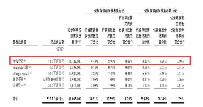股权穿透显示,海棠壹号背靠上海国盛资本,上海国资投资平台由此参与“港股18C第一股”的招股;香港四大家族之一的李兆基之子亦参与认购。