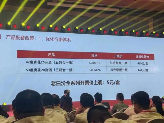涨价方面,老白汾10、老白汾15、和老白汾醇柔等每箱将上调30元(每瓶6元),而更高年份的老白汾20上调价格为60元/箱。