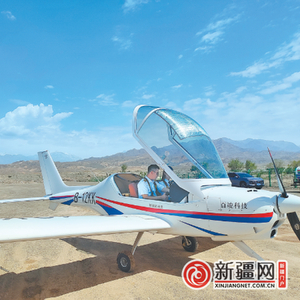 6月3日10时20分,位于达坂城区阿克苏乡高崖子牧场的天空之城航空俱乐部,在塔台的指令下,一架“阿若拉SA60L-T”沿着跑道逐渐加速,昂首冲向天空。