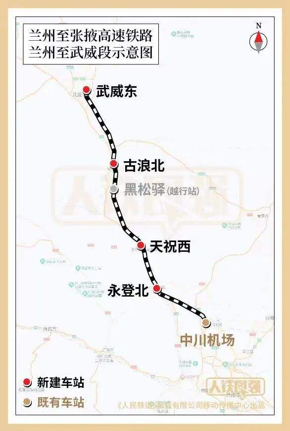 兰张高铁兰武段线路全长约194.3公里,设计时速250公里,新建永登北、天祝西、黑松驿(越行站)、古浪北、武威东5座车站。