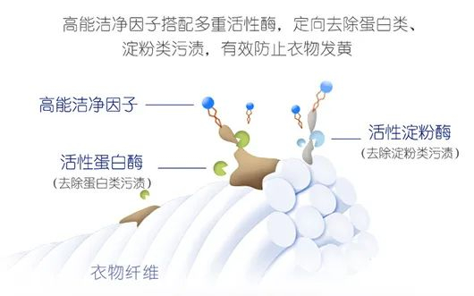 不仅如此,基于“浓缩+”⽣物科技,蓝月亮至尊洗衣液还添加了活性蛋⽩酶、活性淀粉酶,可主动追踪蛋⽩类、淀粉类污渍, 定向去除,有效防⽌⾐物发⻩;添加抗污渍再沉积剂,包裹水中污渍,阻隔污渍再次回沉到⾐物上;添加纤维素酶,清理破损微纤维,提⾼纤维表⾯清洁度,纤维表⾯平整顺滑,保持衣物质感……