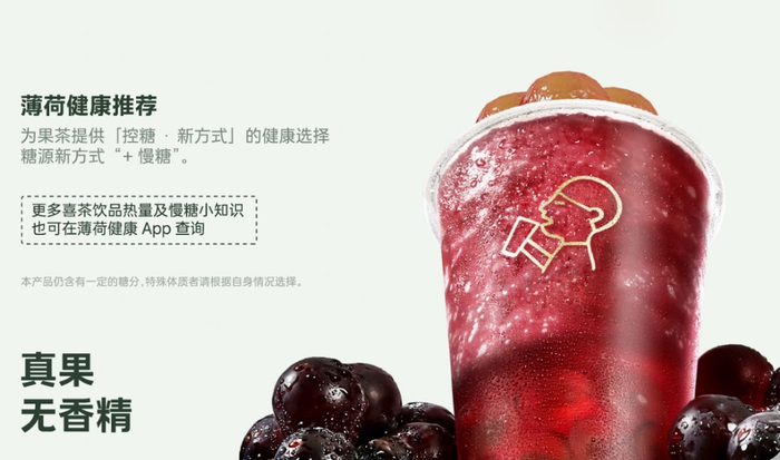 为了实现更进一步的科学控糖,喜茶联合薄荷健康合作推出使用低GI糖原料制作的“+慢糖·多肉葡萄”,在喜茶经典首创单品多肉葡萄的基础上,使用喜茶首创的新型糖原料低GI“慢糖”,为用户带来更轻负担的品饮体验。