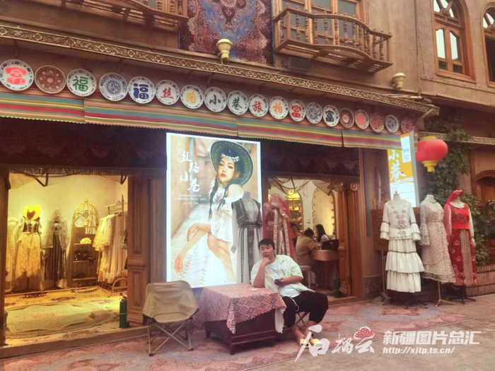 最近几年,从疆外兴起的旅拍风,刮到了喀什古城,先是来了一批外地客商投资开店,接着本地投资商跟进,特别是今年央视春晚喀什分会场,迪丽热巴穿着艾德莱斯裙子跳舞,更是带火旅拍市场,又吸引来一拨投资商开店。现在,穿一套与迪丽热巴同款服饰旅拍写真,已成为喀什古城旅拍新时尚。与此同时,随着影视剧《我的阿勒泰》播出,北疆有建筑特色的六星街、喀赞其民俗旅游区等地,也成为旅拍投资商布局新高地。如今,六星街已开出40余家旅拍店。