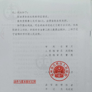 辽宁省锦州市古塔区人民法院判决书。图/受访者提供