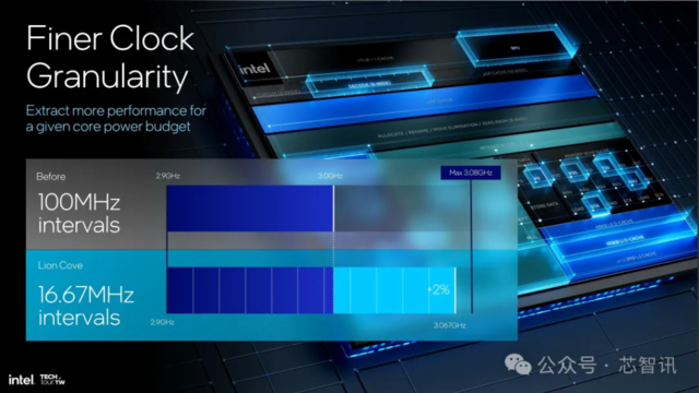 Lion Cove 的电源管理也得到了改进,包括采用 AI 自调节控制器来取代静态热保护带。它让系统以自适应方式动态响应实际的实时运行条件,以实现更高的持续性能。它使用更精细的时钟粒度,现在间隔为 16.67MHz。与 100MHz 相比,这意味着更精确的电源管理和性能调整,从而从功率预算中获得最大效率。