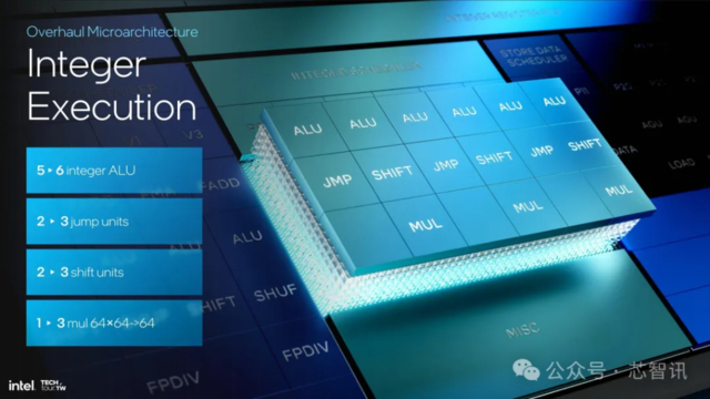 深入研究 Lion Cove 的计算架构,该架构在英特尔的 P 核设计上专注于提高性能和效率。该架构采用一种新的前端方法来处理指令,其预测块比以前大 8 倍,提取范围更广,解码带宽更高,Uops 缓存容量和读取带宽也大幅增加。UOP 队列容量增加,这也提高了整体吞吐量。在执行过程中,Lion Cove 的无序引擎在整数 (INT) 和矢量 (VEC) 域之间划分,具有独立的重命名和调度功能。