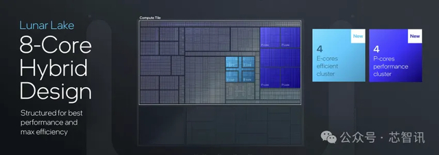 据介绍,Lunar Lake的CPU内核依然采用的Hybrid核心架构设计,拥有4个Lion Cove P-core性能核心和4个Skymont E-core效率核心,组合成8核心混合设计,以达到性能与效率的最佳。