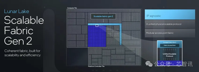 Lunar Lake的CPU、GPU和NPU计算核心则通过Scalable Fabric Gen 2进行互联,然后通过D2D直接与平台控制层的Scalable Fabric Gen 2连接,能够无缝的衔接计算节点、芯片层,让计算核心能有着更好的扩展性与效率。此外,借助Home Agent统筹整个层级的一致性(Hierarchical Coherency),包括Memory Side缓存、每个核心丛集中的Coherency Agent,包括平台控制层的I/O Coherency。