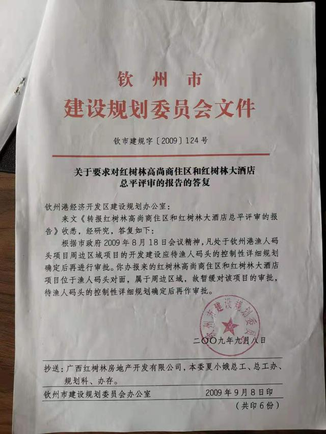 2009年9月8日,钦州市规划委的一纸答复叫停了涉案项目。