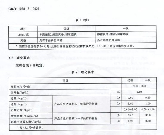 在兼香型白酒国家标准(GB/T 10781.8-2021)仅对兼香型白酒做笼统的感官要求和理化要求时,酱香型白酒则已经在6月1日迎来了新国标的正式发布。此前公开的酱酒新国标意见稿显示,酱香型白酒不再根据产品酒精度分为高度酒和低度酒,而是根据糖化发酵剂的不同分为三类,包括大曲酱香型白酒、麸曲酱香型白酒、混合曲酱香型白酒。